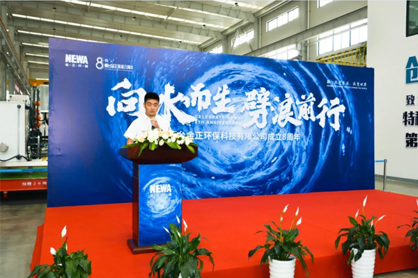 活動現(xiàn)場,公司總裁李越彪首先向八年來為公司發(fā)展而努力付出的人致謝。他表示,人生總要做點事,一生只做一件事,金正環(huán)保就是要成為中國乃至世界污水回用領(lǐng)軍企業(yè)。未來,相信在全體金正人的共同努力下,金正環(huán)保必將迎來更加輝煌的明天。
