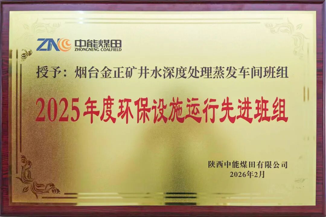 近日,煙臺金正環保“脫穩耦合平板膜”創新工藝的首個規模化應用——陜西中能煤田袁大灘煤礦項目再傳捷報,“煙臺金正礦井水深度處理蒸發車間班組”連續第二年被陜西中能煤田有限公司授予“2025年度環保設施運行先進班組”榮譽稱號。